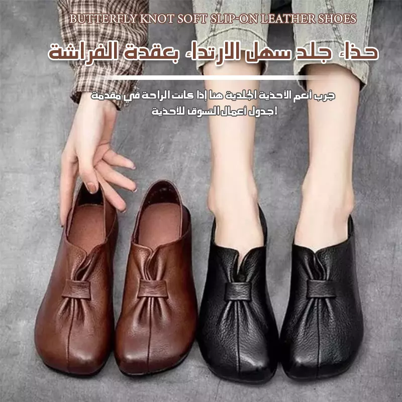 حذاء جلد سهل الارتداء بعقدة الفراشة